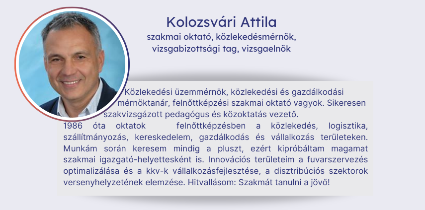 | Szállítmányozó képzés | Közlekedés és szállítmányozási képzések | 500 óra | 2026. január 21. | |